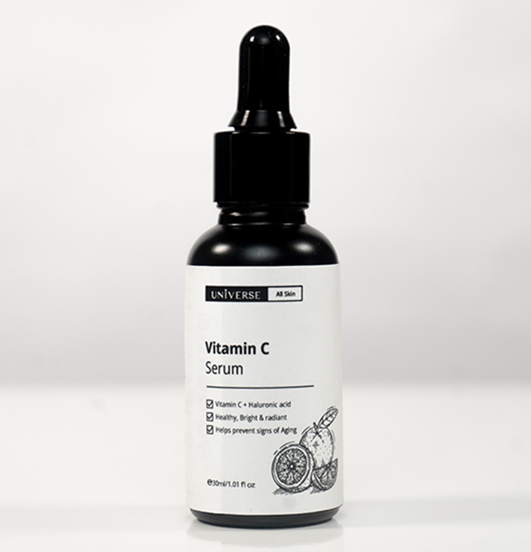 UNIVERSE Vitamin C serum is formulated with Ethyl Ascorbic acid which is not sensitive to light, air, and water like other forms of Vitamin C. When applied to the skin, Ethyl Ascorbic Acid penetrates the skin barrier effectively and converts to ascorbic acid within the skin cells. This conversion enables it to act directly in areas where collagen production, skin repair, and brightening are most needed.